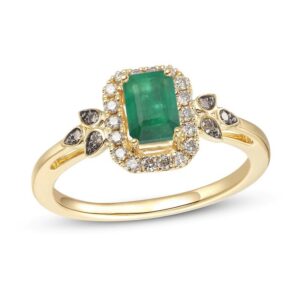 Emerald Ring 1/5 ct tw Diamonds 14K Honey Gold