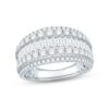 Delight her with this splendid anniversary ring. Featuring radiant rows of round diamonds that sparkle above and below a shimmering channel-set row of baguette-cut diamonds, the ring is fashioned in lustrous 14K white gold. The diamonds total an impressive 2 carats in weight. From the Now and Forever? bridal collection.