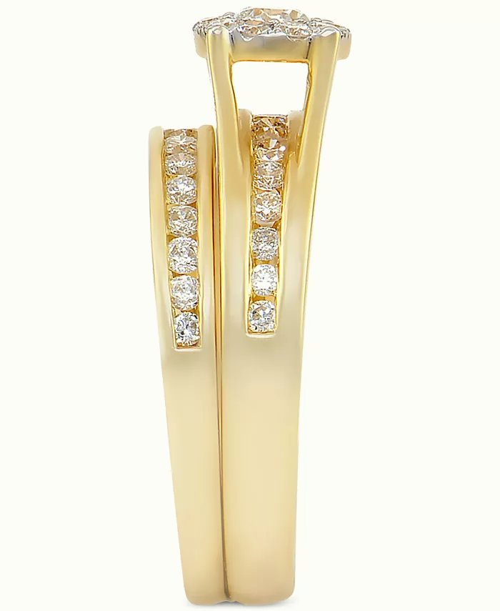 It’s all about the elegance with this romantic round-cut diamond bridal set (1 ct. t.w.) featuring a stunning engagement ring and matching wedding band adorned with channel-set diamonds. Crafted of 14k white, yellow or rose gold.
